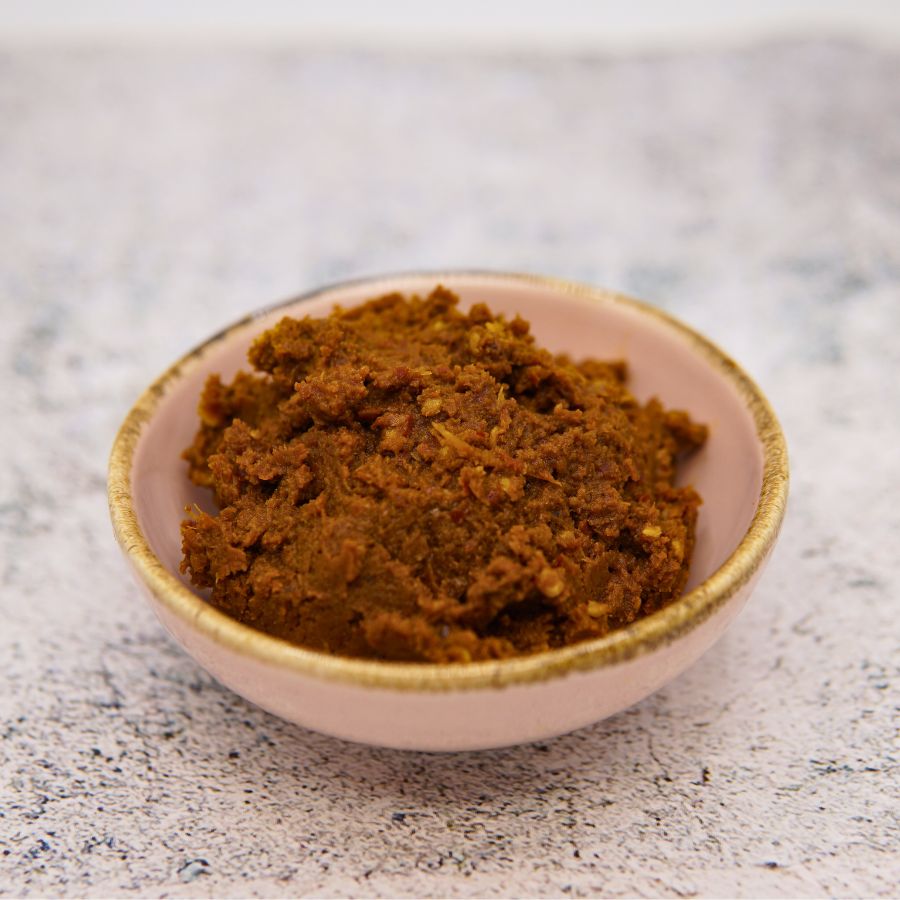 เราใช้วัตถุดิบคุณภาพสูง เช่น พริกแห้ง ตะไคร้ กระเทียม หอมแดง ข่า ขมิ้น และเครื่องเทศหอม ๆ อย่างผงกะหรี่ ผสานเป็นน้ำพริกแกงที่รสเผ็ดร้อนแต่กลมกล่อม มีความหวานอ่อน ๆ และเปรี้ยวนิด ๆ ที่ทำให้ข้าวซอยแตกต่างจากแกงอื่น ๆ